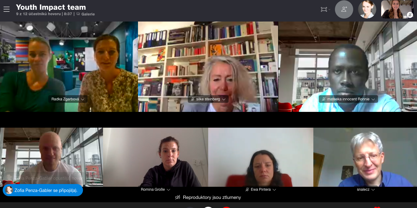 YOUTH IMPACT team memeber from 4 partner countries (Czechia, Germany, Poland, and Slovakia) met 1-2 September 2020 on-line do discuss finalization of outcomes for work packages 4 and 5 of the project (Toolkits and blended learning courses) and the future of work packages 7 and 8. The meeting – which was first planned as an in-person 2-day meeting in Warsaw, Poland – took place in half-day sessions over two days.